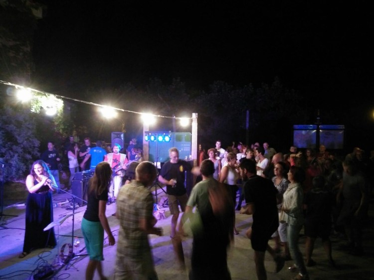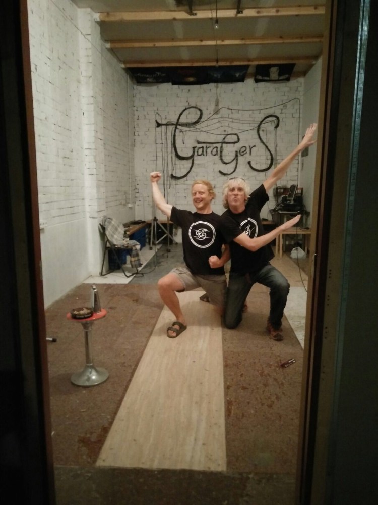 Als de band stopt, zijn wij nog niet uitgefeest, en worden we door Jordi en nog een lokale Spanjaard meegenomen naar het centrum van Ager. Maar eerst rijden we even langs een grote loods: de repetitieruimte van the Garagers. Lode en ik krijgen ieder een bandshirt en een paar stickers.
