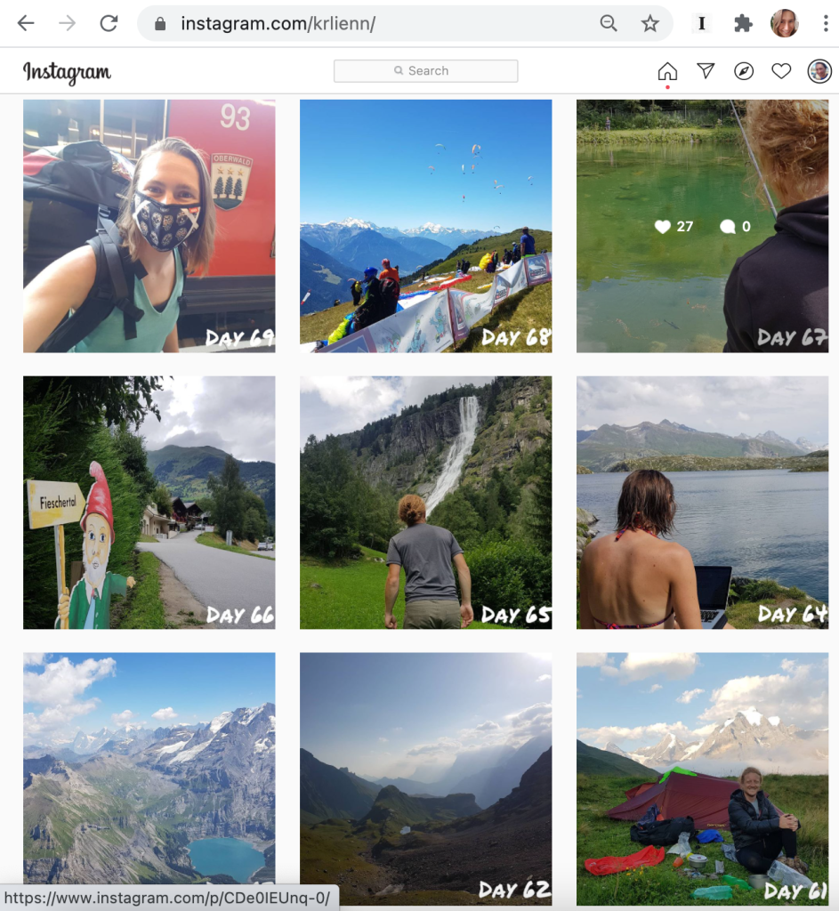 Project ‘reis in 100 dagen’ op instagram: gedurende zomer 2020 iedere dag één foto met bijschrift – instagram.com/krlienn