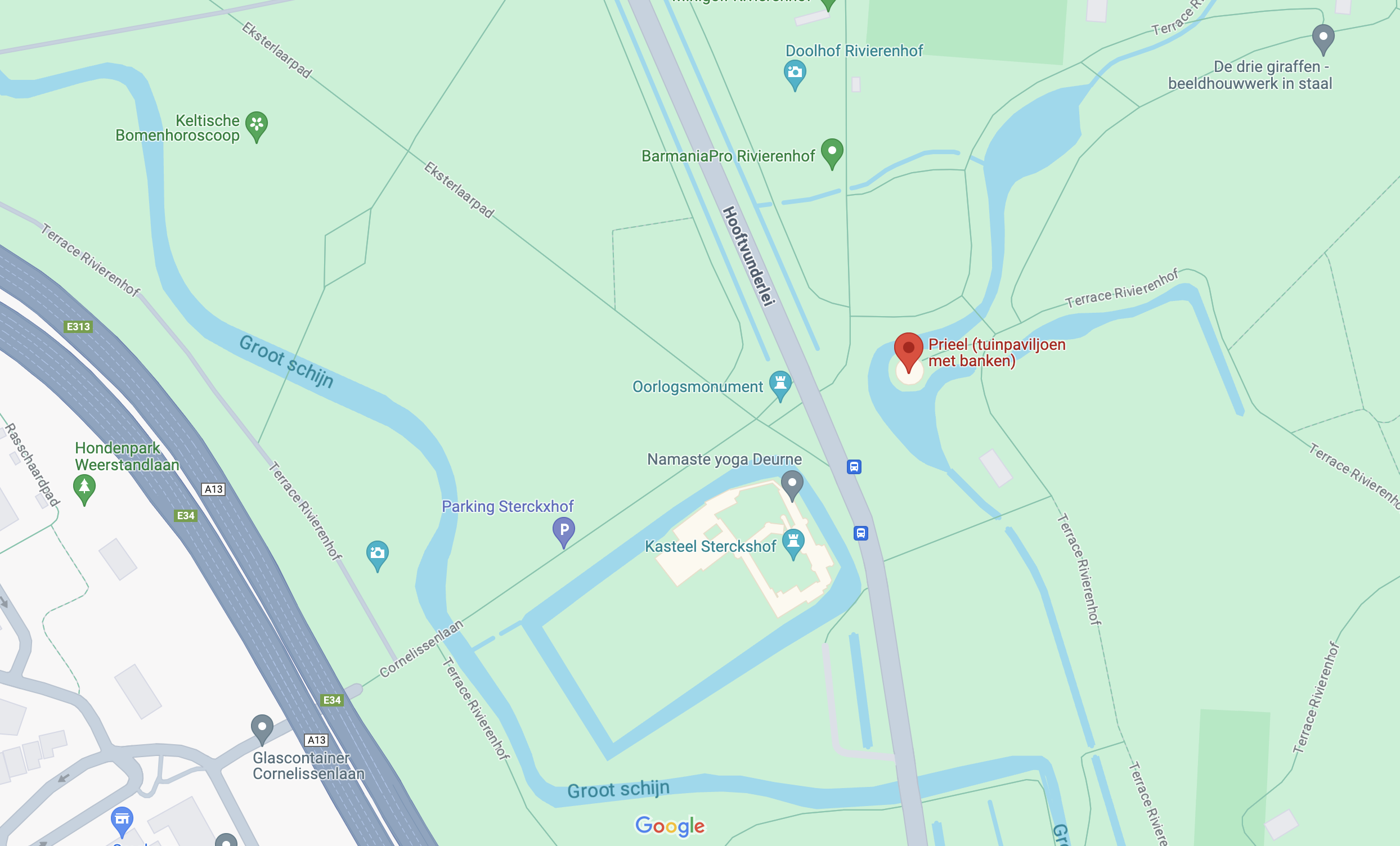 - Het prieel ligt vlak naast bushalte ‘Deurne Sterckshof’. Er gaan hier gewone lijnbussen alsook De Lijn flexbussen (een flexbus kun je boeken via Hoppin.be).